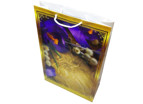 Punga cadou primavara, 24/39/10 cm, tiparita in policromie pe hartie de 150 gr/mp, plastifiata, cu capse, cu manere din polipropilena.